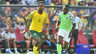South Africa quickly restored parity with Percy Tau conjuring up some magic with his left foot to leave Kenneth Omeruo and William Troost-Ekong for dead then set it on a plate for Lebo Mothiba to tap in.